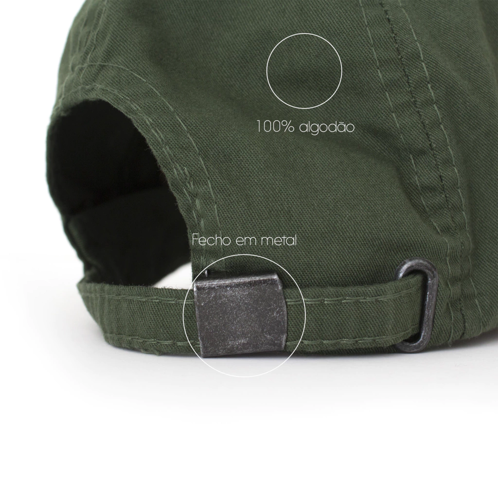 Repara só: nada de fecho de plástico feio e difícil de fechar. Nossos bonés possuem o fecho metálico, que dura mais e é bem mais fácil de ajustar e manusear.