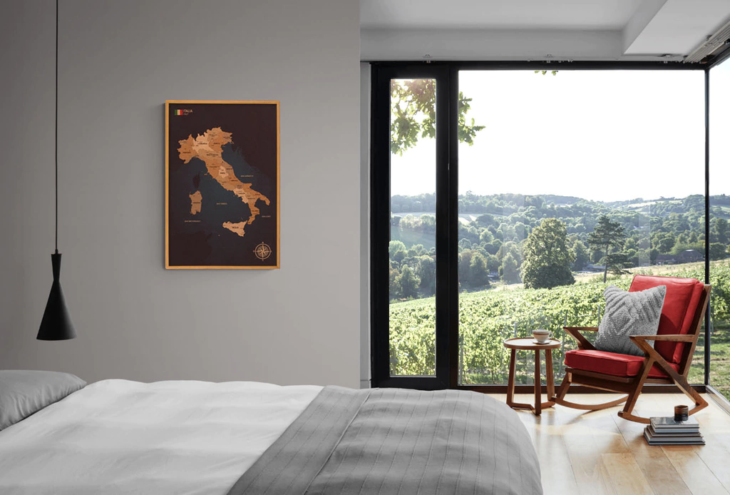 Conteúdo: 1 quadro mapa Itália Cortiça Luxo com moldura de madeira natural