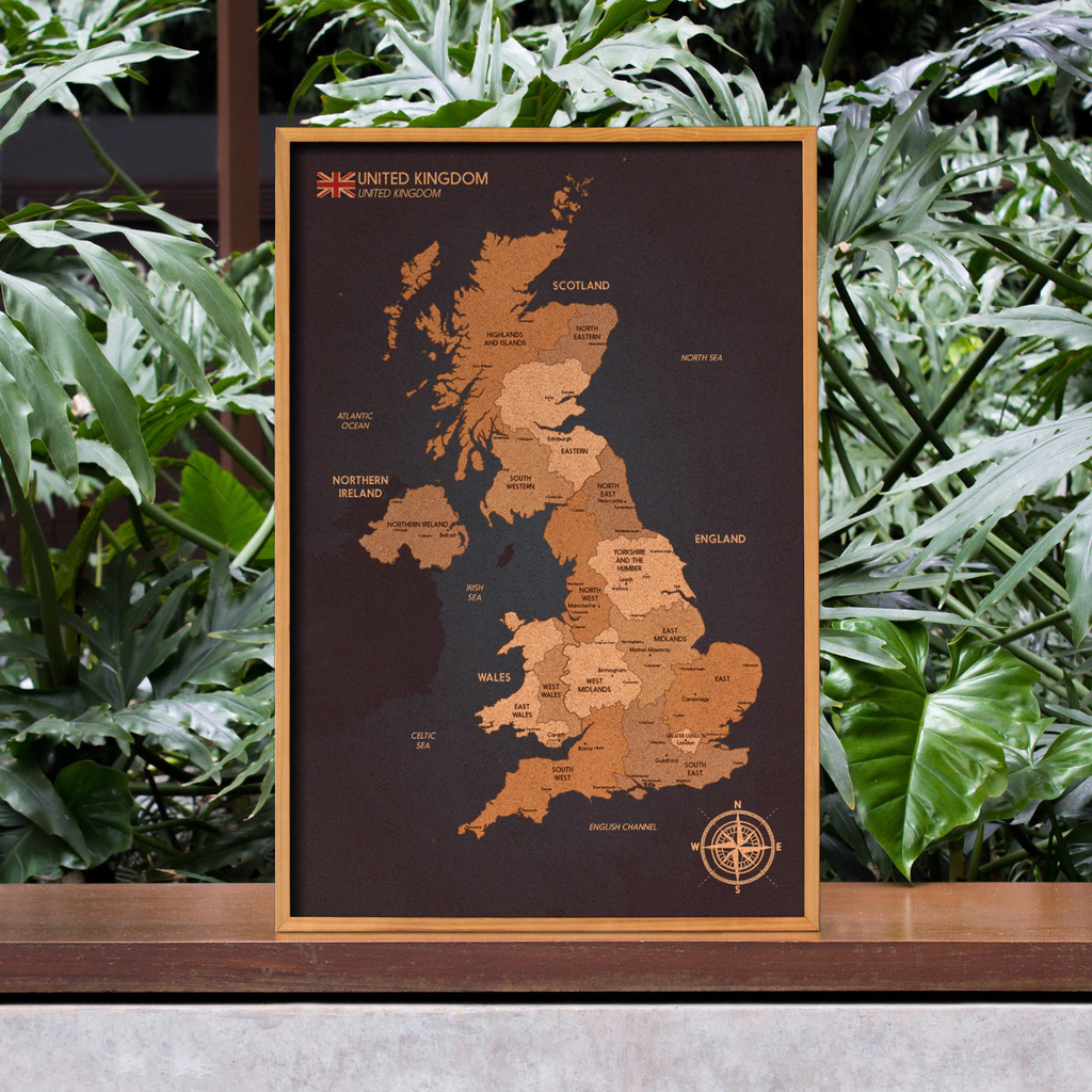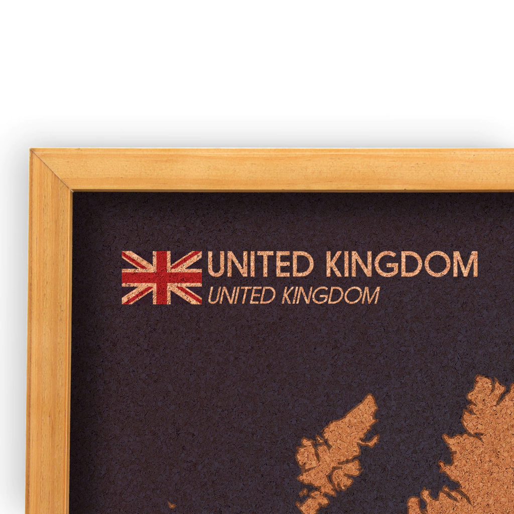 Conteúdo: 1 quadro mapa Reino Unido Cortiça Luxo com moldura de madeira natural
